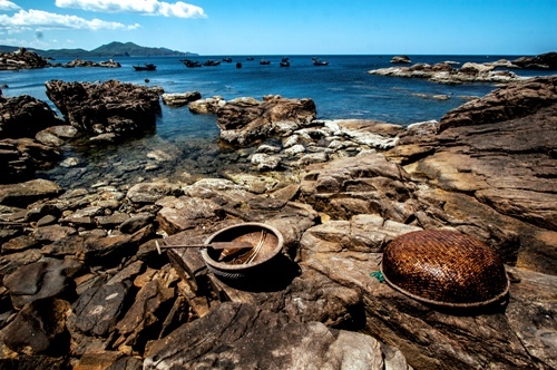 Xa xa là những chiếc thuyền thúng của ngư dân nằm phơi mình trên đá sau một mẻ lưới đầy ắp. Chắc chắn với chiếc máy ảnh trong tay, du khách sẽ thu được những khoảnh khắc đẹp về của bức tranh thiên nhiên này.